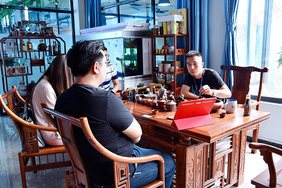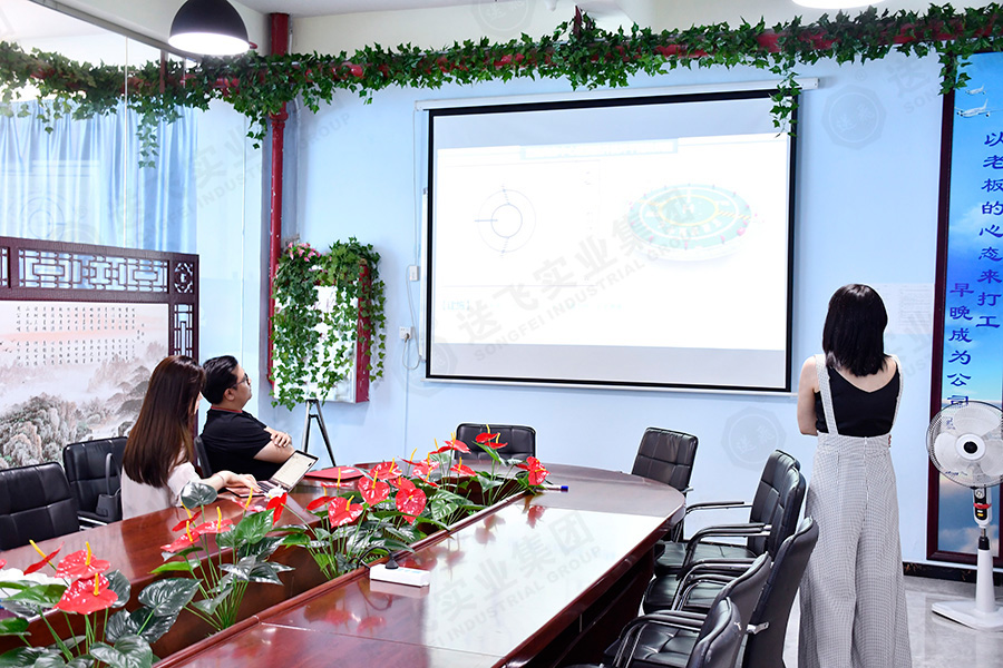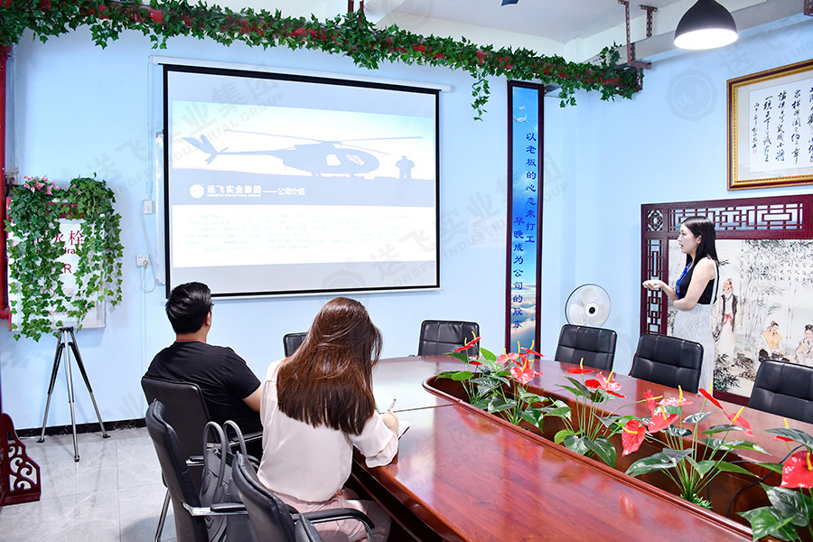 參觀結束后,在會議室,董事長助理為廣英科技園的領導就此次項目進行PPT講解。包括公司介紹、工程案例、設計詳解、施工流程。